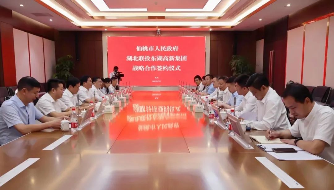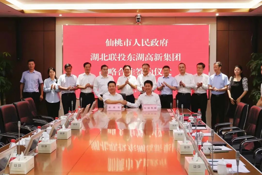7月31日,湖北省仙桃市人民政府與湖北聯(lián)投東湖高新集團(tuán)簽訂戰(zhàn)略合作協(xié)議。仙桃市委書記羅聯(lián)峰,市委副書記、市長(zhǎng)孫道軍,湖北聯(lián)投集團(tuán)黨委書記、董事長(zhǎng)劉俊剛出席簽約儀式并座談交流,湖北聯(lián)投黨委委員、副總經(jīng)理、東湖高新集團(tuán)黨委書記雷宗江主持儀式。